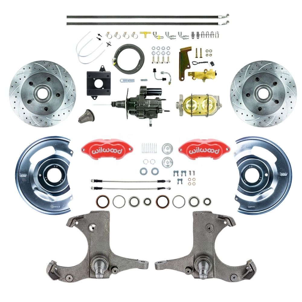 Description1960-62 Chevy/GMC Truck & Suburban Hydraulic Brake Assist Performance Series, Front Disc Brake Conversion Kit, Red Wilwood Calipers, Drilled and Slotted Rotors, Braided Stainless Hoses