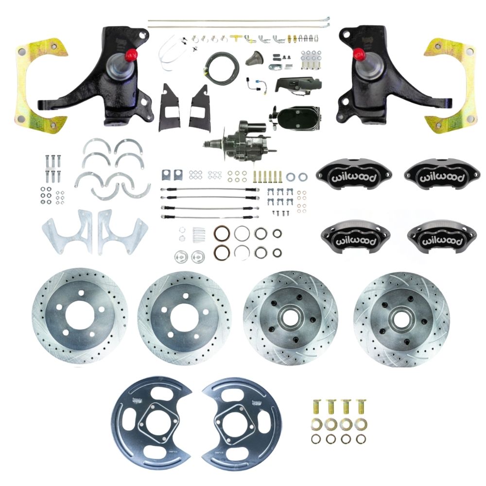 Description1973-87 GM C10/C15 Truck/Sub 2WD 2" Drop Performance Series Hydraulic Brake Assist 4-Wheel Disc Brake Kit, Black Wilwood Calipers, Drilled and Slotted Rotors, Stainless Hoses, Black Upper Assembly